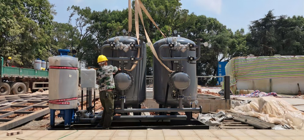 韶山干部學(xué)院 容積式換熱機(jī)組吊裝現(xiàn)場(chǎng)