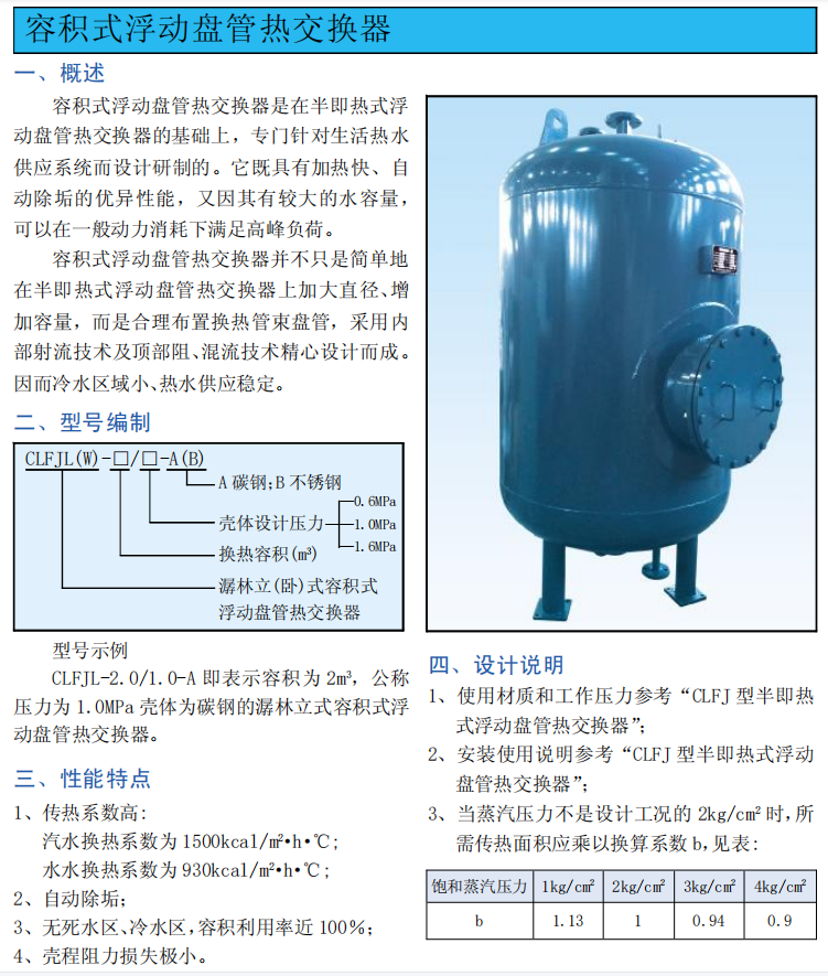 產(chǎn)品編號:容積式浮動盤管熱交換器